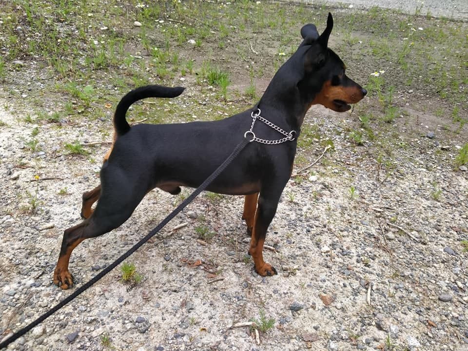 Bonne constitution, tète bien typée, DCC, manque d expérience du ring, queue bien attachée, poitrine bien développée, très bonne avant et arrière main, bonne angulation arrière, très bons mouvements